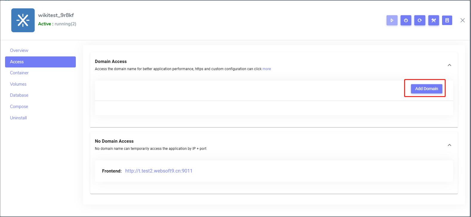 1. Login to Websoft9 Console and open the Access tab of application management interface from My Apps