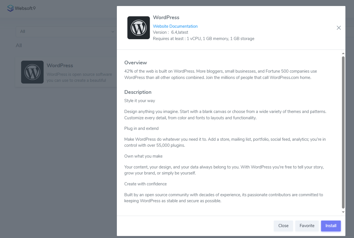 Here are the professional steps for hosting WordPress on Websoft9: